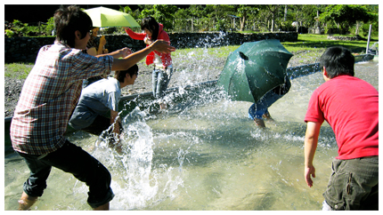 個人覺得踩出一條水柱挺好玩的...但是也會噴到自己臉..